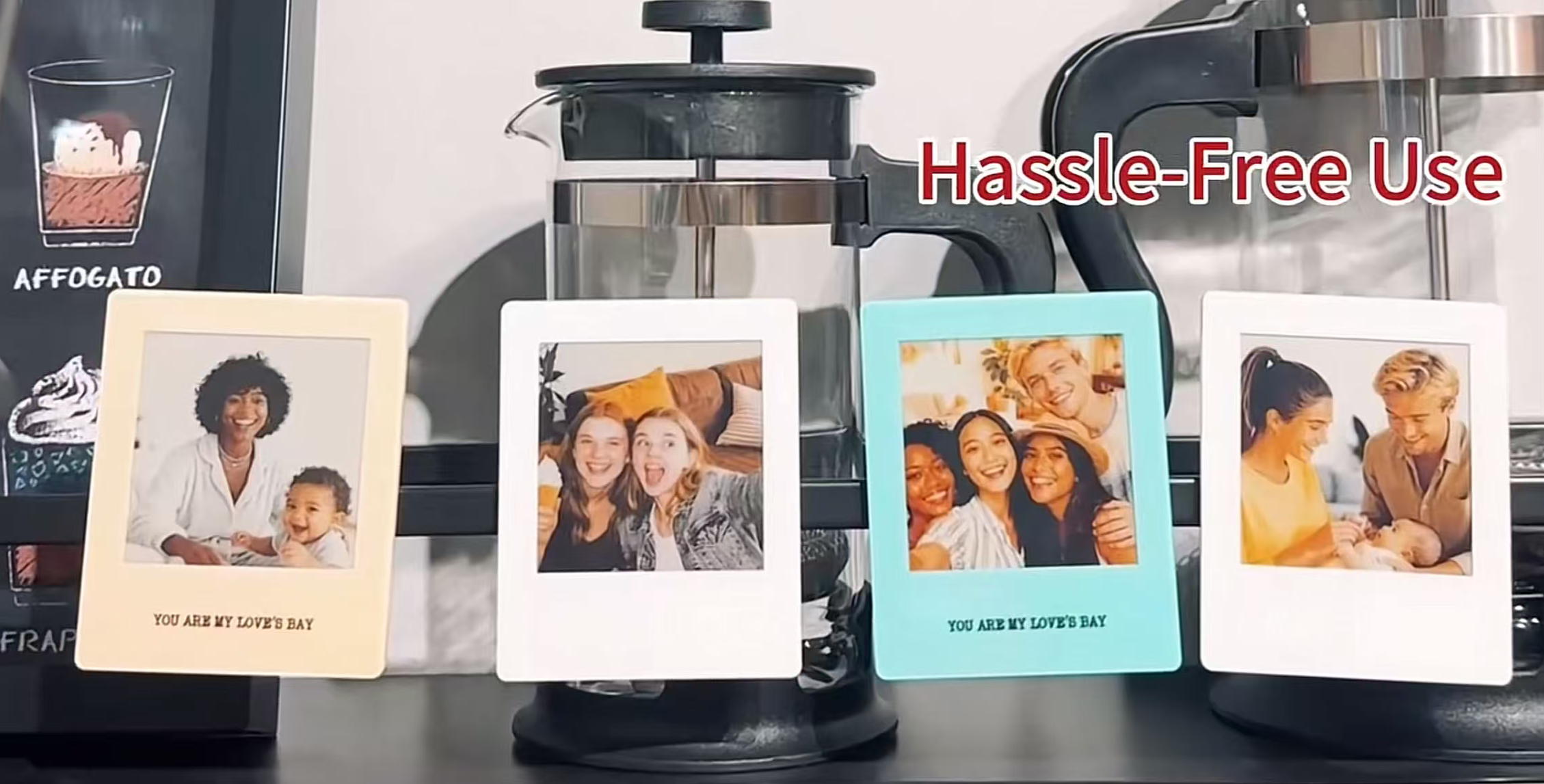 The fridge is the heart of the home for displaying photos, but instant film photos (Polaroid, Instax, etc.) fade, curl, and can’t be changed—failing to stand the test of time. Families love putting up family portraits, kids’ growth photos, and travel memories on the fridge to hold onto life’s sweet moments; these photos bring joy every time you step into the kitchen. But paper photos are highly susceptible to the environment: kitchen fumes and humidity speed up oxidation, leaving photos yellowed, faded, curled, or even moldy over time. Once posted, they’re fixed—showing new photos means printing more, wasting film and leaving sticky residue on the fridge that ruins its look.