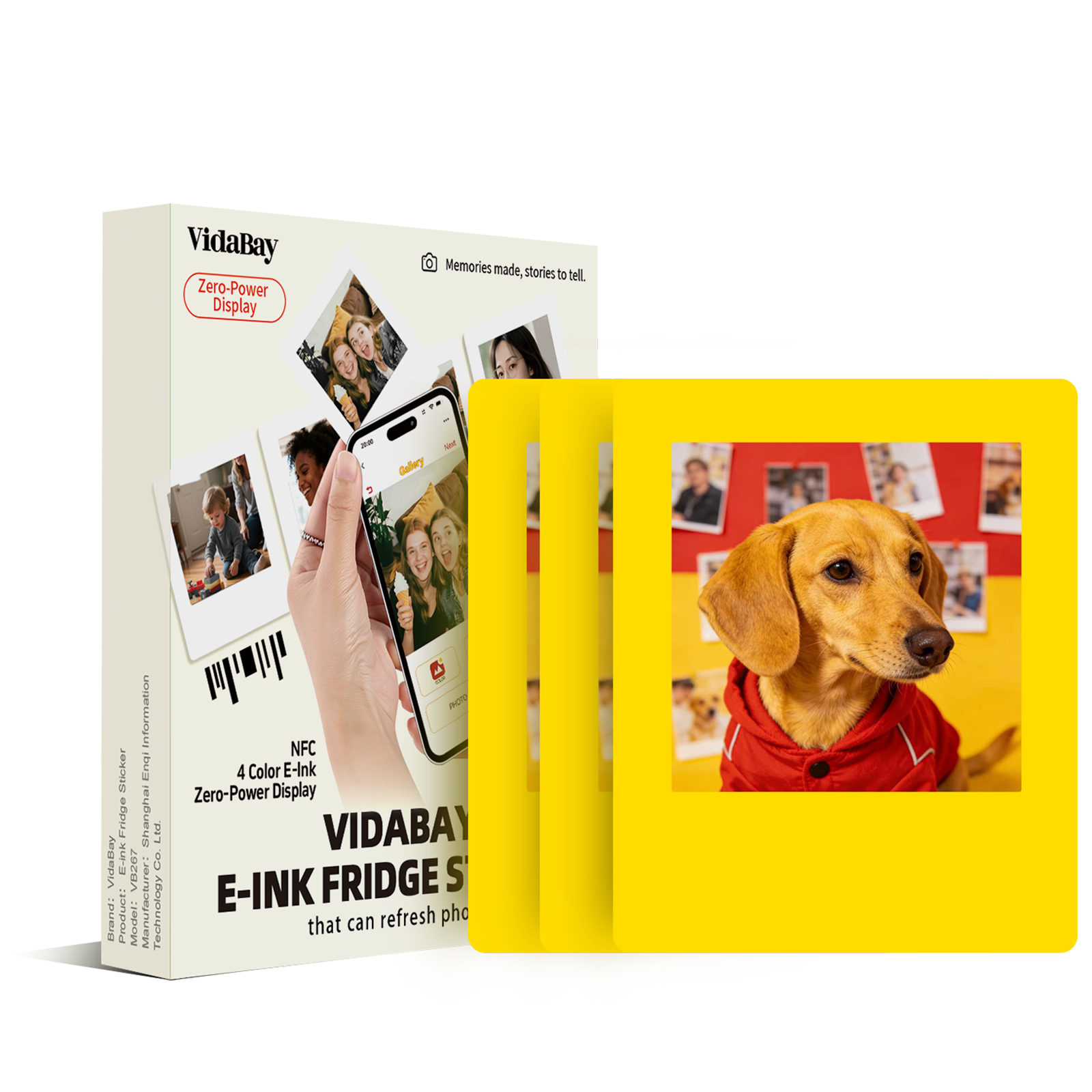 这款四色电子纸冰箱贴适用于 iPhone(安卓手机受限于 NFC 连接位置)。搭配 VidaBay Snap APP 使用,可添加滤镜、叠加效果、黑白特效和四色混合功能,将照片变成个性化的视觉素材。只需轻触 NFC 即可即时同步手机内容,无需复杂设置。可作为便携配件放入皮套/皮包中,或贴在办公室墙上作为提醒/待办事项板。采用定制 UV 印刷,使用防褪色油墨;无需电池,无需电源即可永久保存图像。强力磁铁背面可牢固吸附在冰箱/白板上,用于装饰、记录回忆或做笔记。